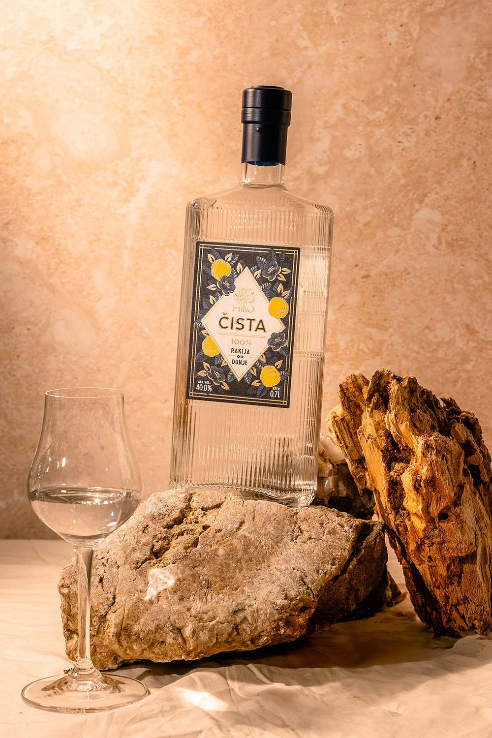 Rakija koja stoji ispred 21,136 stabala dunje – napravljena fermentacijom soka od dunje, nakon čega je uzeto isključivo srce destilata.